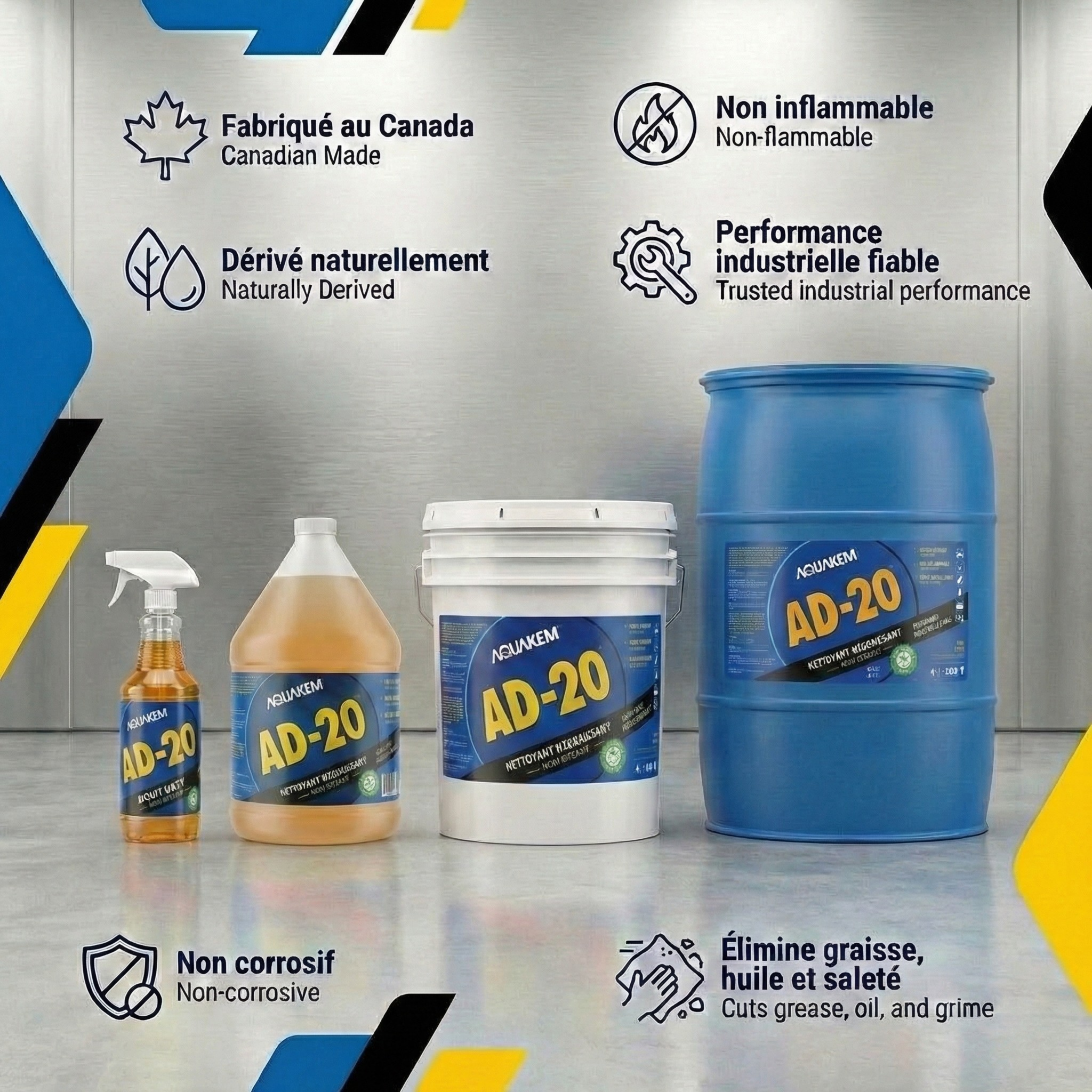 • Versatile Application: From intricate machinery components to expansive industrial surfaces, AD-20™ is the solution for all degreasing challenges