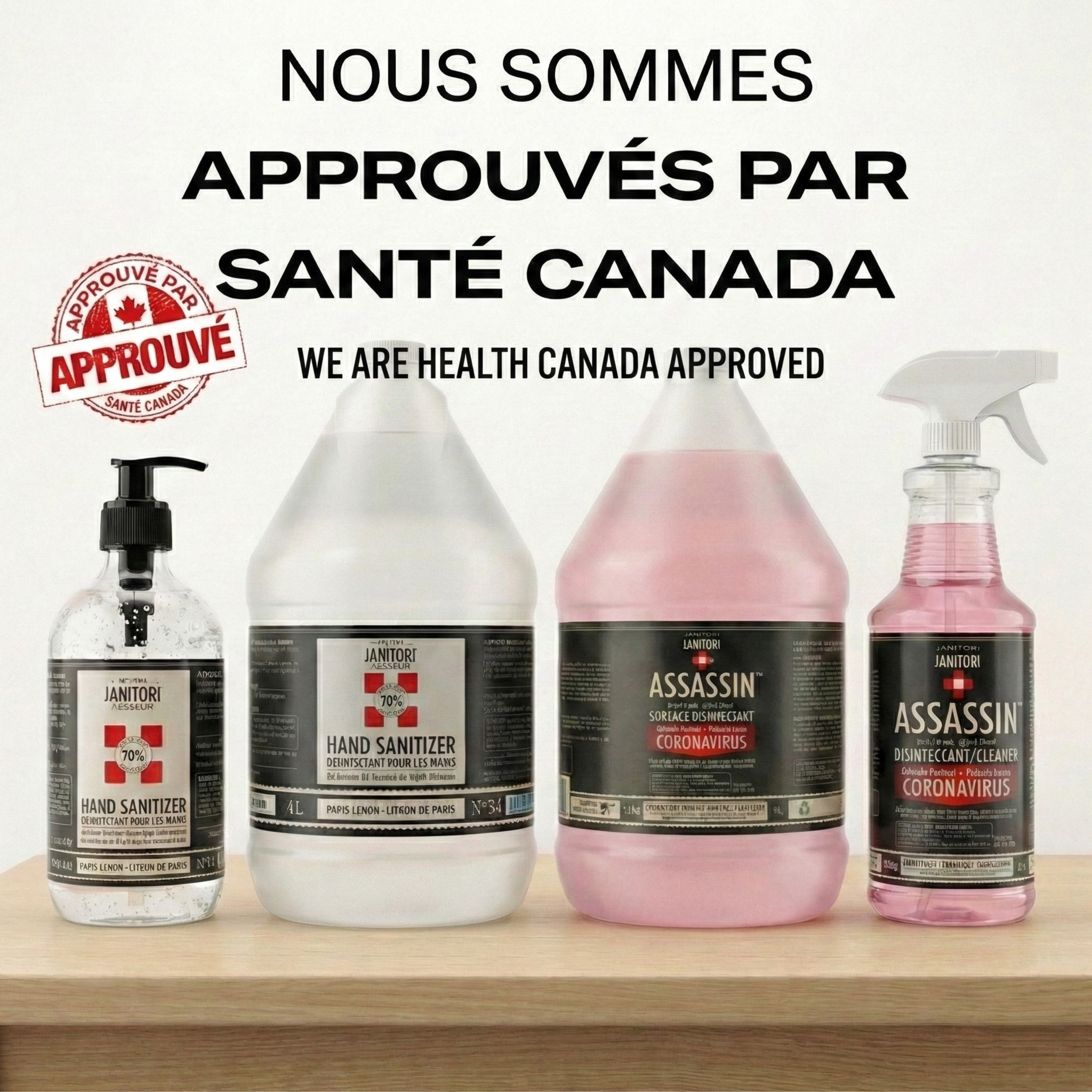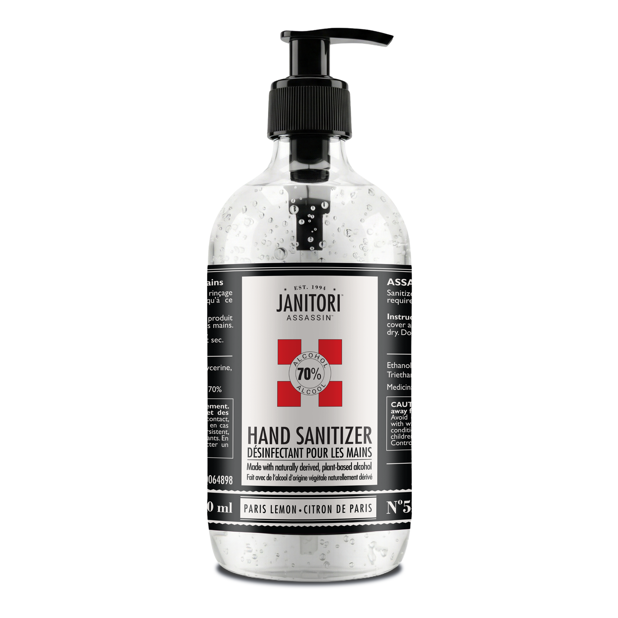 Janitori™ Assassin™ eco-friendly hand sanitizer is approved by Health Canada (NPN - 80064868). It’s formulated without using harmful chemicals. Use the sanitizer to clean your hands without leaving your skin dry and harming the environment. This sanitizer bottle features a hand sanitizer gel hand pump for easy access. Simply apply and disinfect your hands.